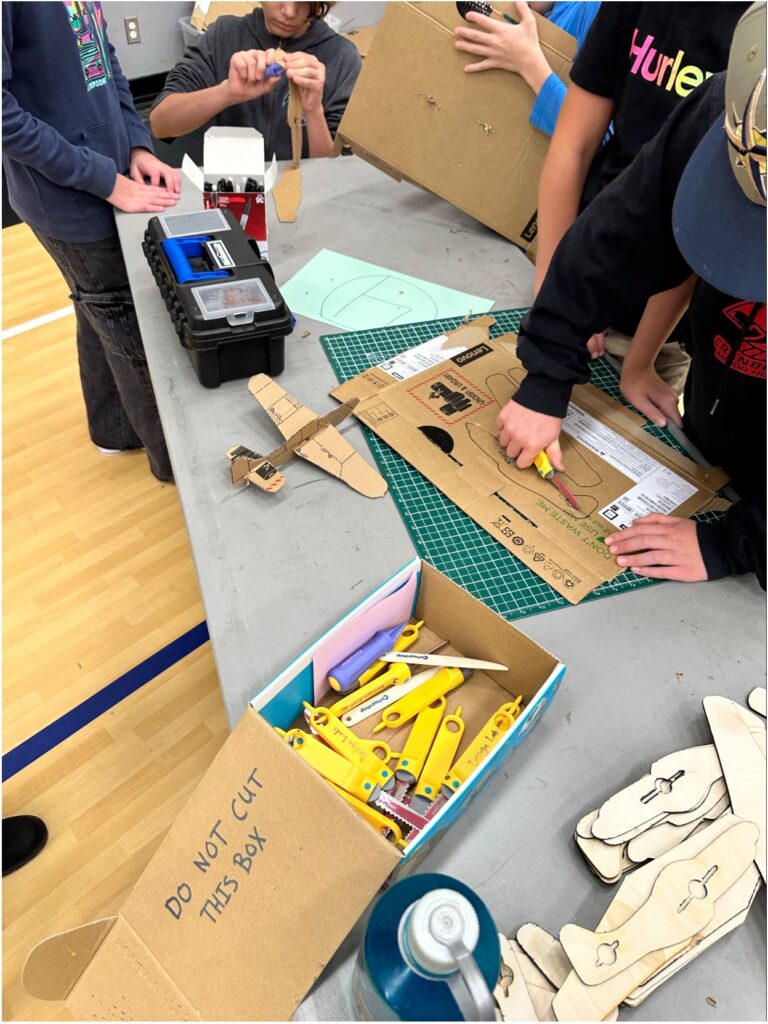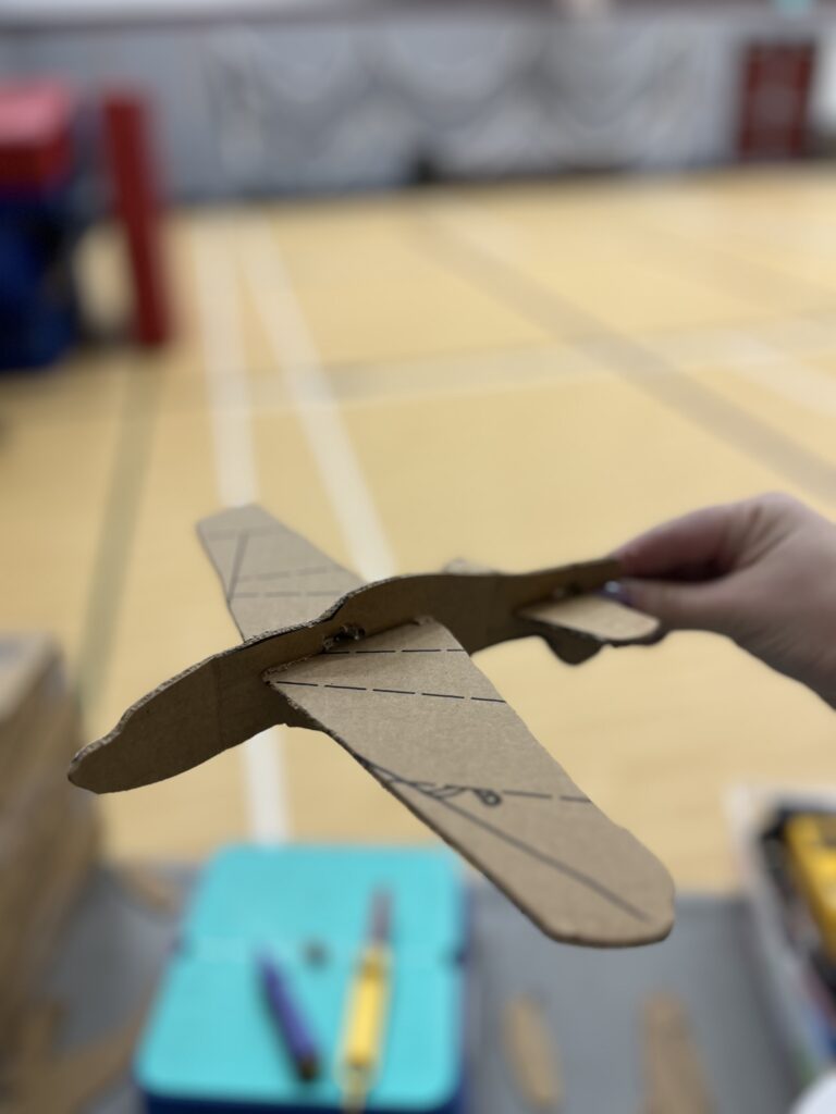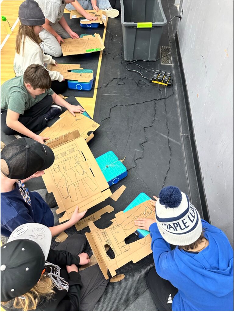 For the last session of the day, I was at the cardboard paper airplane station where we used stencils, Chompsaws and cardboard hand saws to create a cardboard paper airplane. This station was overwhelming and honestly kind of a blur. I often felt like I was sinking. For this station, we had K-2. This was really challenging as the students were unable to trace the stencil and were not strong enough to maneuver the cardboard through the Chompsaw. With that, we were fortunate enough to have help from two lovely grade 6 helpers and our instructors. Thankfully, we were able to adapt, pull it together and successfully get everyone through! Although I feel like it flew by, I had one interaction with a little boy in grade one that I previously worked with at another school the year before. This boy has an IEP, and is the sweetest soul you’ll ever meet. The joy that the Chompsaw brought him made it all worth it. I can still hear his little giggle, and it just reminds me how important it is to slow down. Even though I felt like I was letting my station down, that interaction made my whole day.