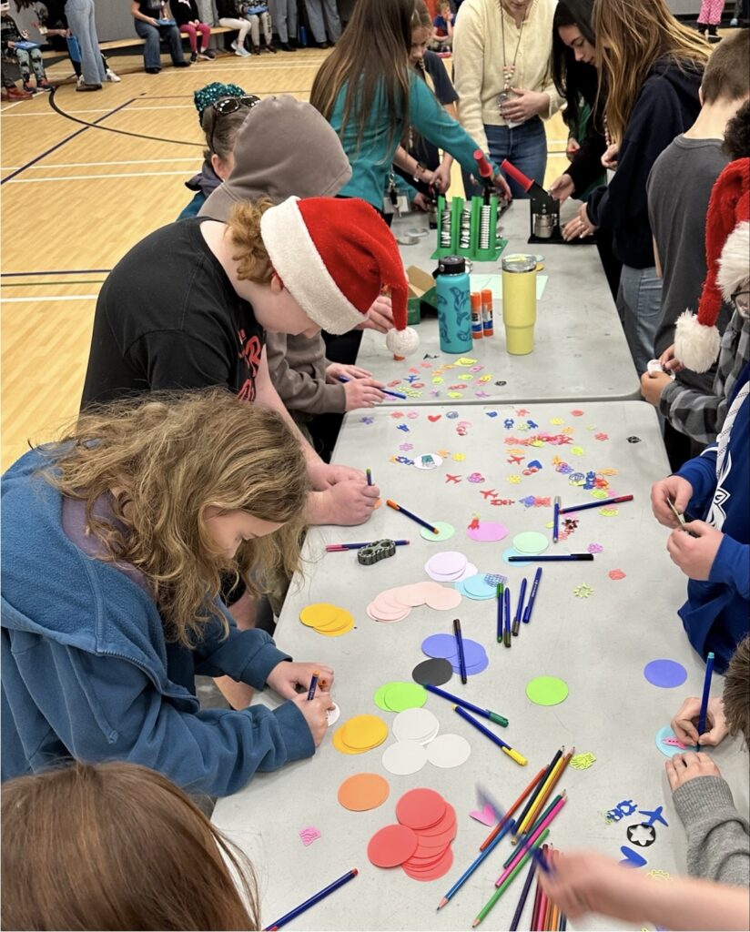 First up, I was at the button-making station for the grades 5-6. This station was really fun, and I think my group worked well together. The students started by creating their designs on a small piece of circular paper. They could either draw or choose a cut-out design that was previously made on the Cricut. After the design process, students were able to create their button using the button-making machines. They loved this!