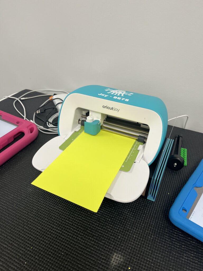 Today, while visiting the Design Lab, we talked about our next class event called “Innovation Hour”. During Innovation Hour, students get to discover some of the possibilities technology offers. Today in class, we were fortunate enough to discover some of the activities we will be helping with. For example, one of the activities was using the Cricut app on the school iPads to design cutouts that students could attach to the buttons for the button-making station. This activity was really fun. I enjoyed being able to explore this process through creativity. Watching the Cricut print was also really fun!! Such an amazing machine.